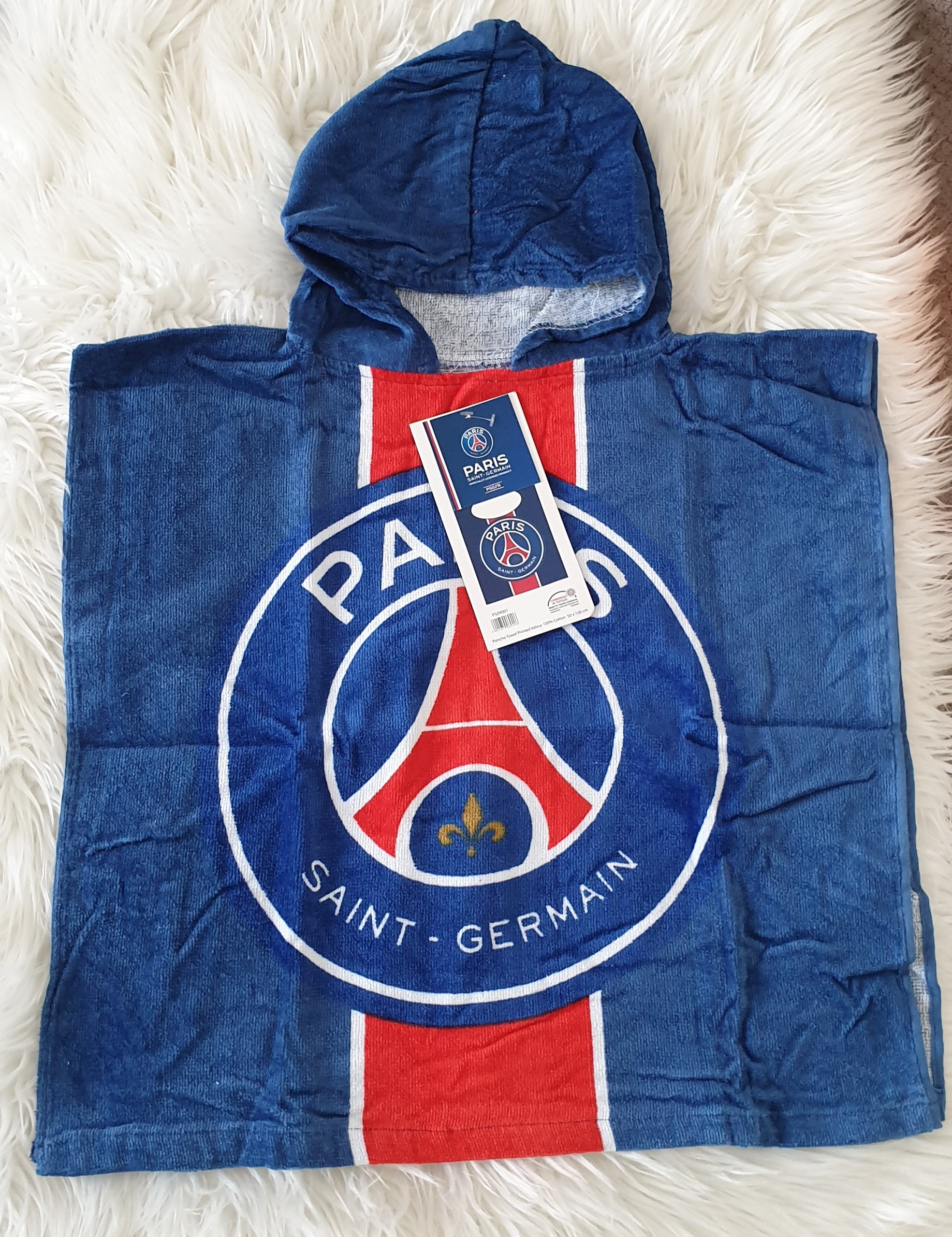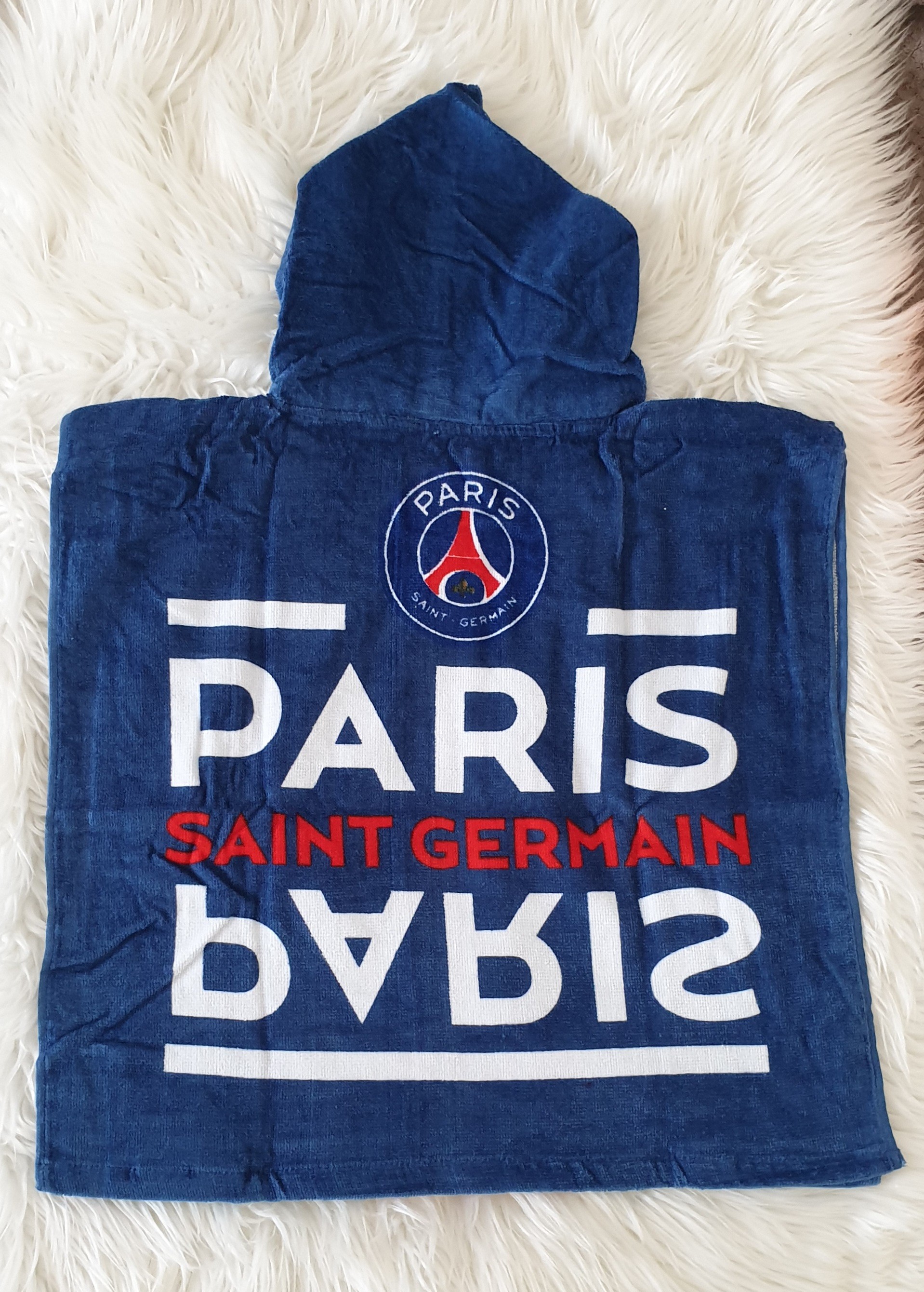 Votre petit garçon est fan du PSG, offrez lui ce magnifique poncho pour le bain avec une capuche.